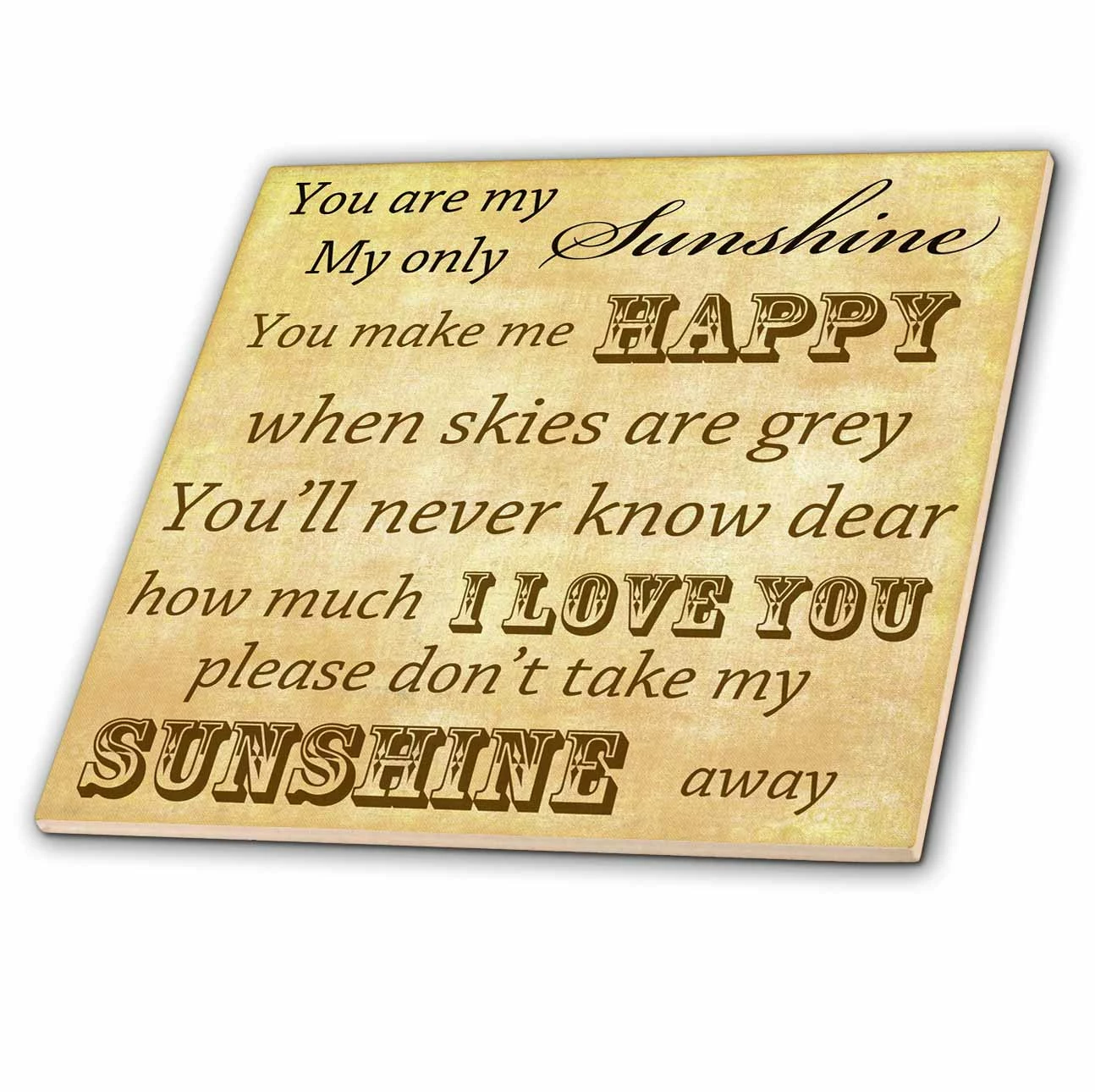 Vintage Songs You Are My Sunshine- Love Songs Tile is great for a backsplash, countertop or as an accent. This commercial quality construction grade tile has a high gloss finish. The image is applied to the top surface and can be cleaned with a mild detergent.