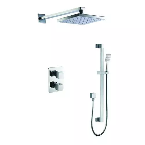 This complete shower set includes: Water Diverter, Temperature Control, On/Off Control, Rain Showerhead, Handheld Showerhead