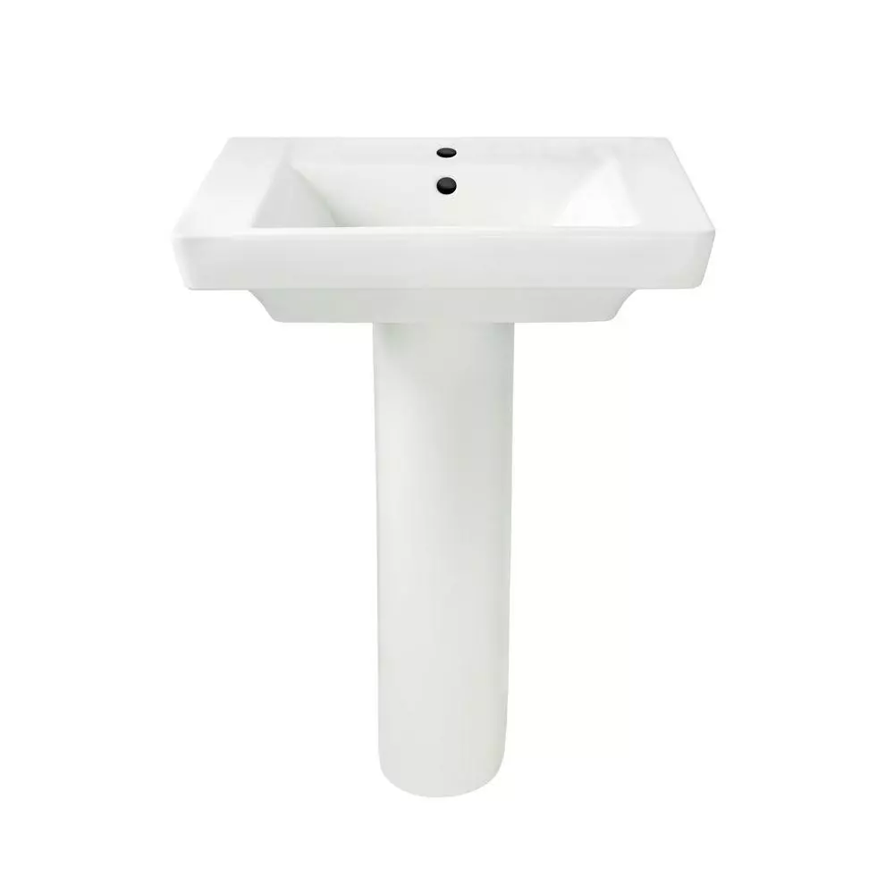 A bold, sophisticated classic. This striking rectangular pedestal sink from the Boulevard Suite brings a touch of uptown flair to any bathroom. its ergonomic Right Height design helps prevent back strain. Made from high-gloss, stain-resistant vitreous china. Available with a single hole or 4 in. or 8 in. center faucet holes.