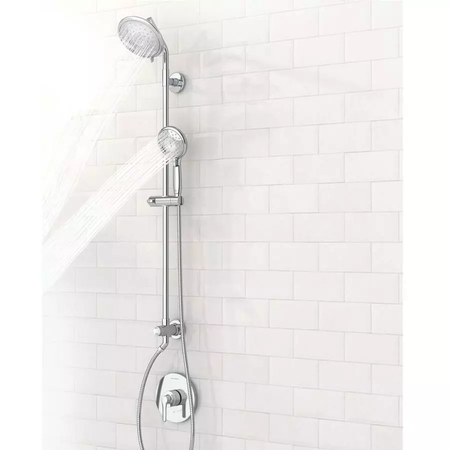 Push-button diverter easily switches from showerhead to hand shower or combines both