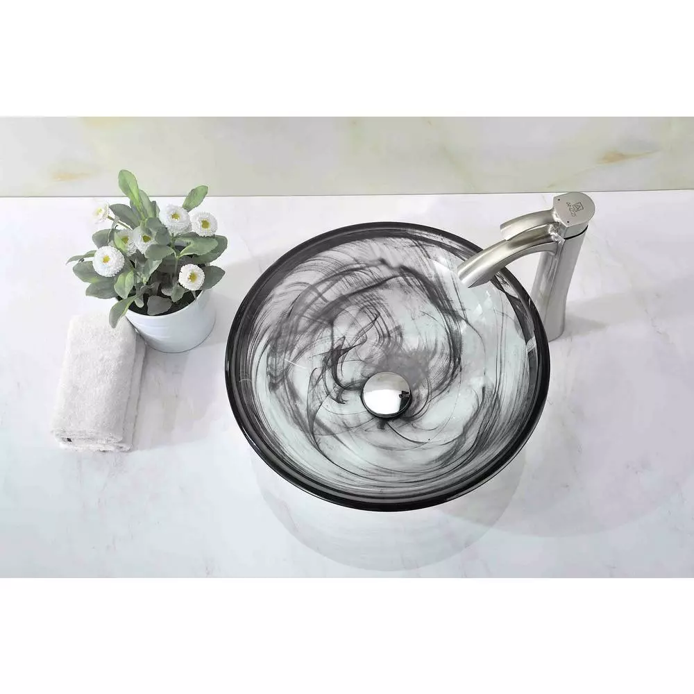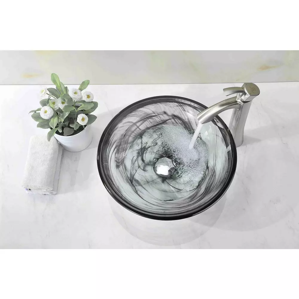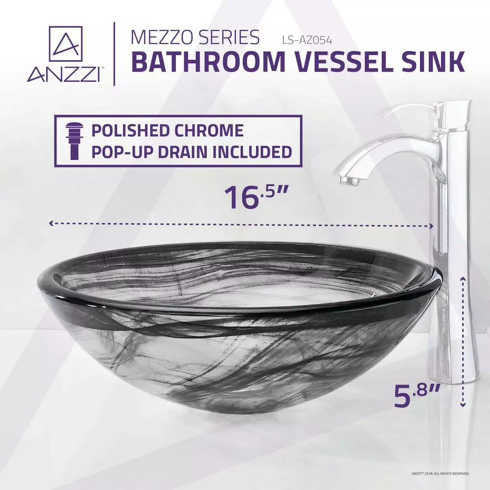 The ANZZI Mezzo Series sink is a traditionally crafted round vessel sink adorned in an Slumber Wisp Finish. Each ANZZI vessel sink if formed using Rhino Alloy certified high tempered Deco-Glass material. The result is a dynamically shaped and captivating vessel centerpiece for any bathroom counter.