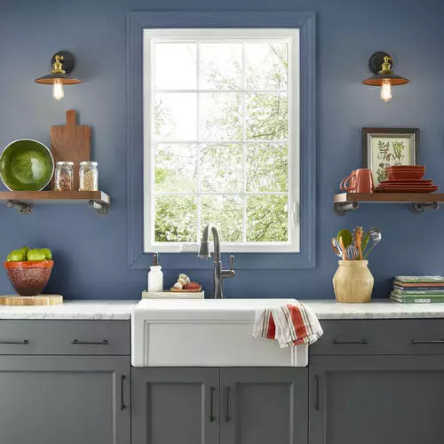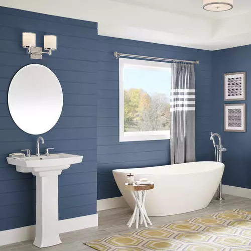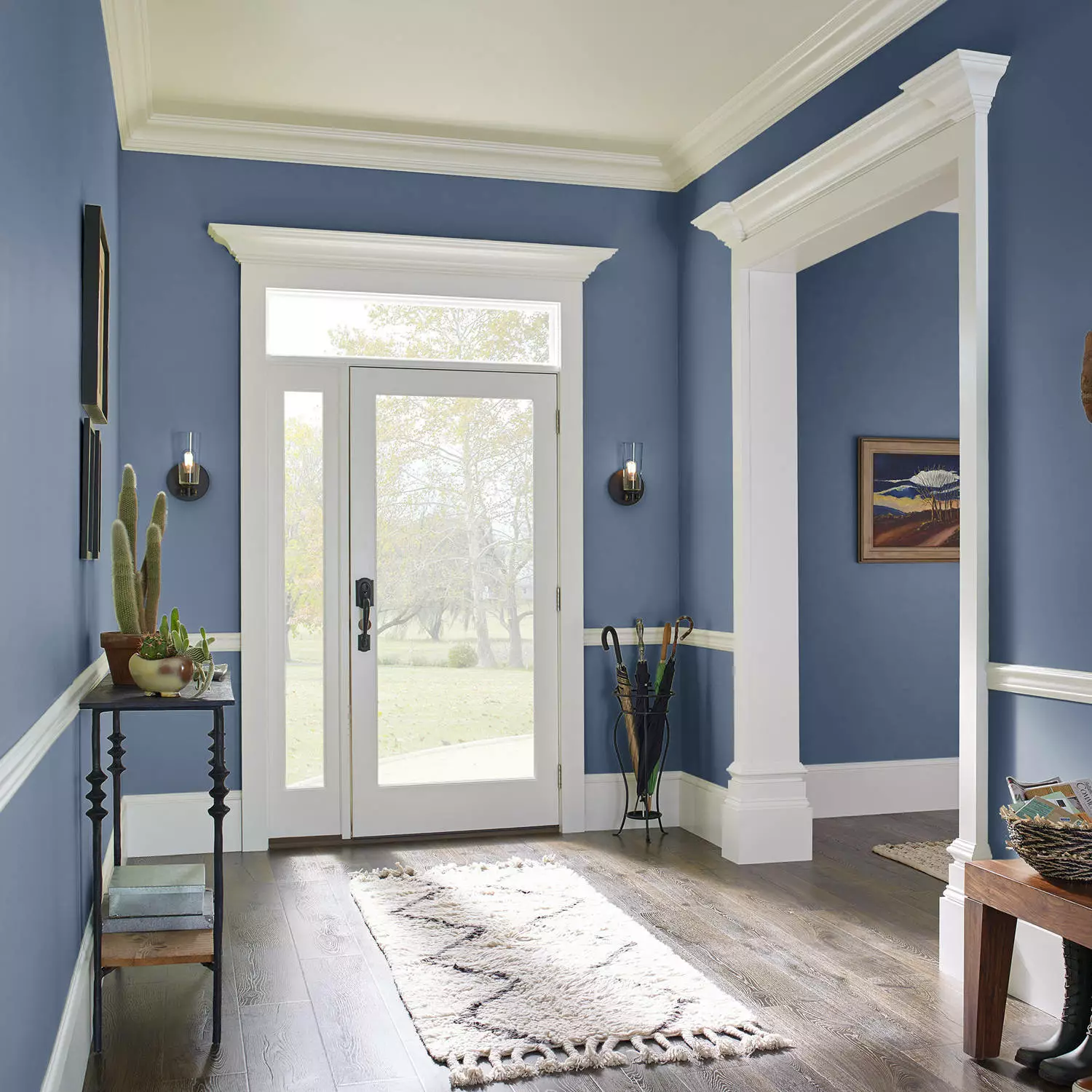 KILZ COMPLETE COAT Paint & Primer in One Interior/Exterior is a low VOC, low odor 100 percent acrylic house paint that has the best features of interior and exterior paint in one convenient product. COMPLETE COAT offers excellent hide, easy application and touch up, and resistance to staining, fading and peeling. COMPLETE COAT is also highly washable and has a mildew-resistant finish. Available in 736 colors and three sheens ? Flat, Satin and Semi-Gloss. Color samples are available in 8 oz. containers. INTERIOR USES: Walls, ceilings. EXTERIOR USES: Siding, shutters, fencing. SURFACES: Drywall, stucco, brick, masonry, wood, fiber cement, vinyl siding. Do not use on floors. COVERAGE: 300-350 square feet per gallon on smooth surfaces; 200-300 square feet per gallon on rough surfaces. Dries to the touch in 2 hours, recoat after 4 hours. Can be applied with a roller, brush or airless sprayer. Mix well before using.KILZ COMPLETE COAT Interior/Exterior Paint & Primer in One #RC120-02 Authentic Navy