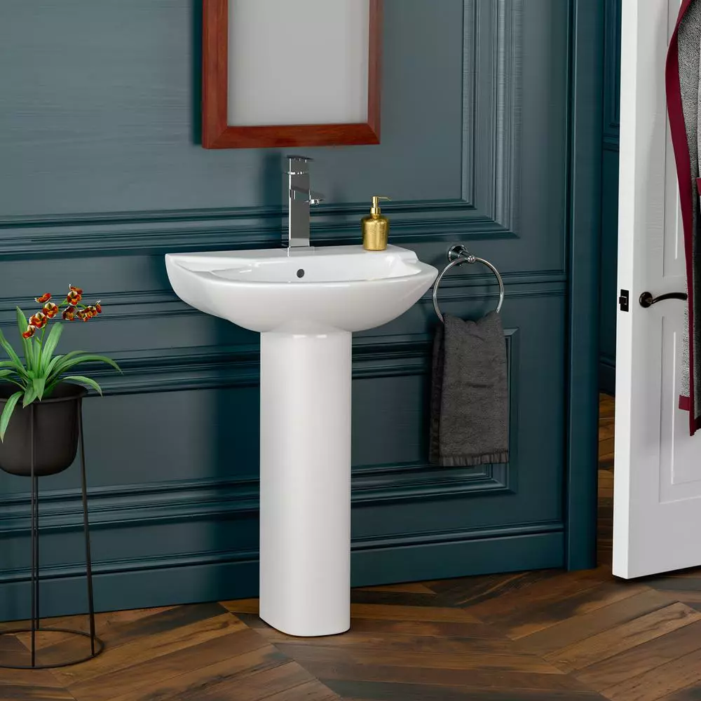 Anabel is a smart new pedestal lavatory from Barclay that will be a chic addition to your bath. Anabel’s basin features a small triangular deck built into one side of the rim. This basin would be perfect for a mid-sized contemporary bathroom.