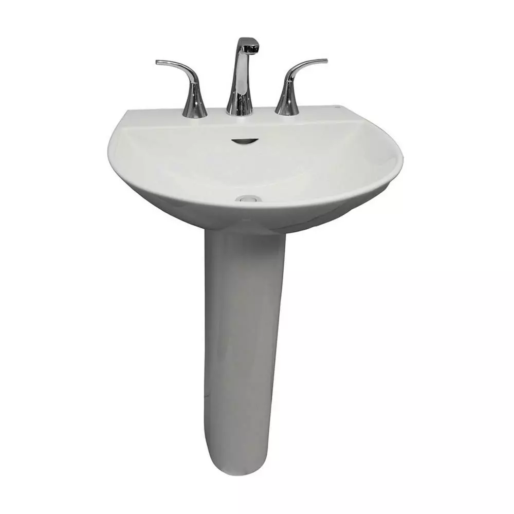 The sleek spherical Reserva pedestal lavatory is the perfect piece for that spacious modern bathroom. Pristine white vitreous china will brighten your decor. Accent the scooped basin with your choice of 8 in. widespread faucet.