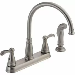 In Stock Hardwarestore Delivery Pilar 2-Handle Standard Kitchen Faucet With Side Sprayer In Arctic Stainless