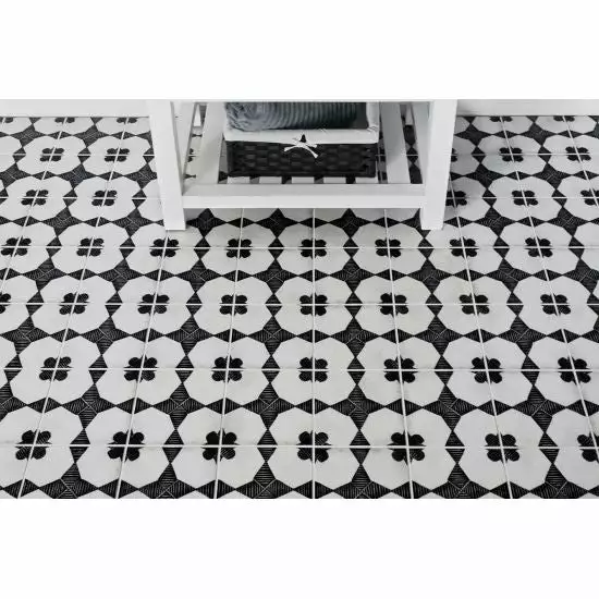 Designed to replicate hand-painted cement tiles, the Enchante Collection delivers the aesthetic of encaustic cement tile in a low maintenance, durable color-body porcelain. Select one of our 8″ x 8″ tiles in one of three patterns: Charm, Splendid, or Moderno.