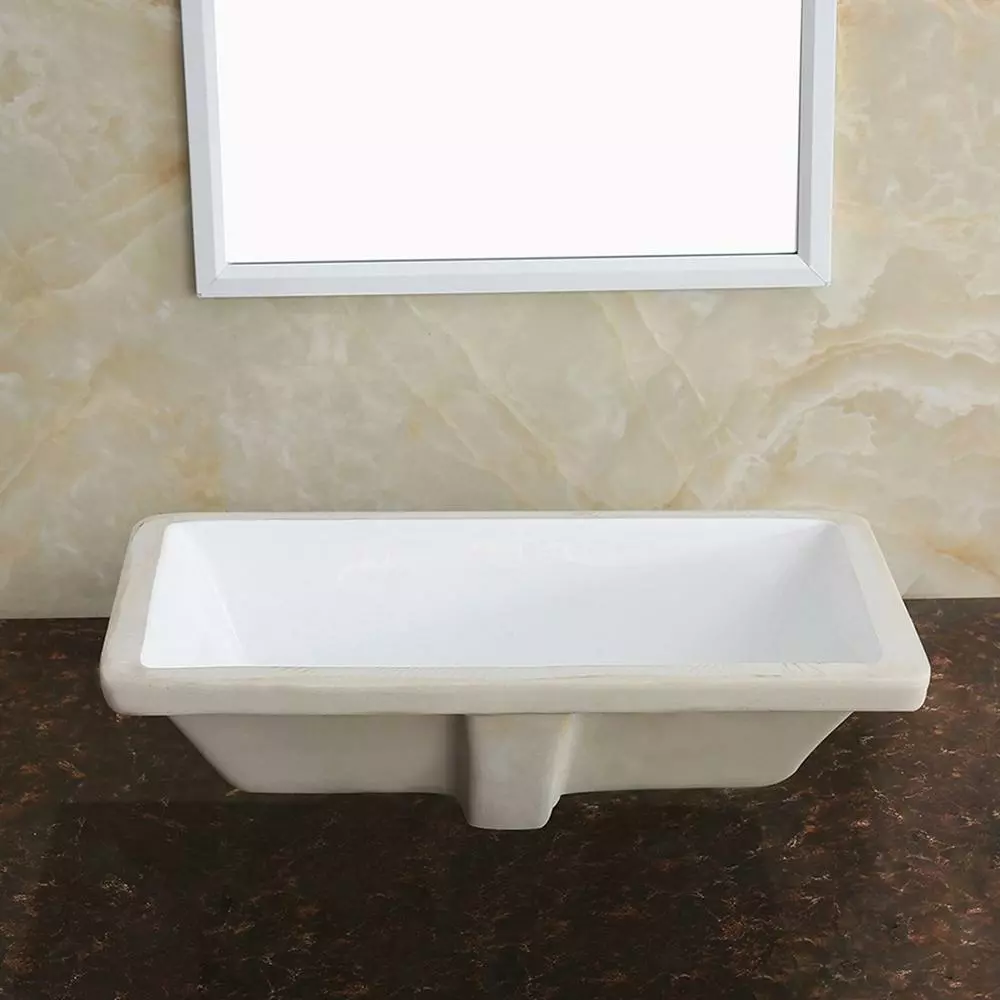 - Bowl size: 21 in. x 13 in. x 7 in. (534 mm x 340 mm x 177 mm), cutout size:17-3/4 in. x 10-1/4 in., rectangular, white, with overflow, without faucet hole