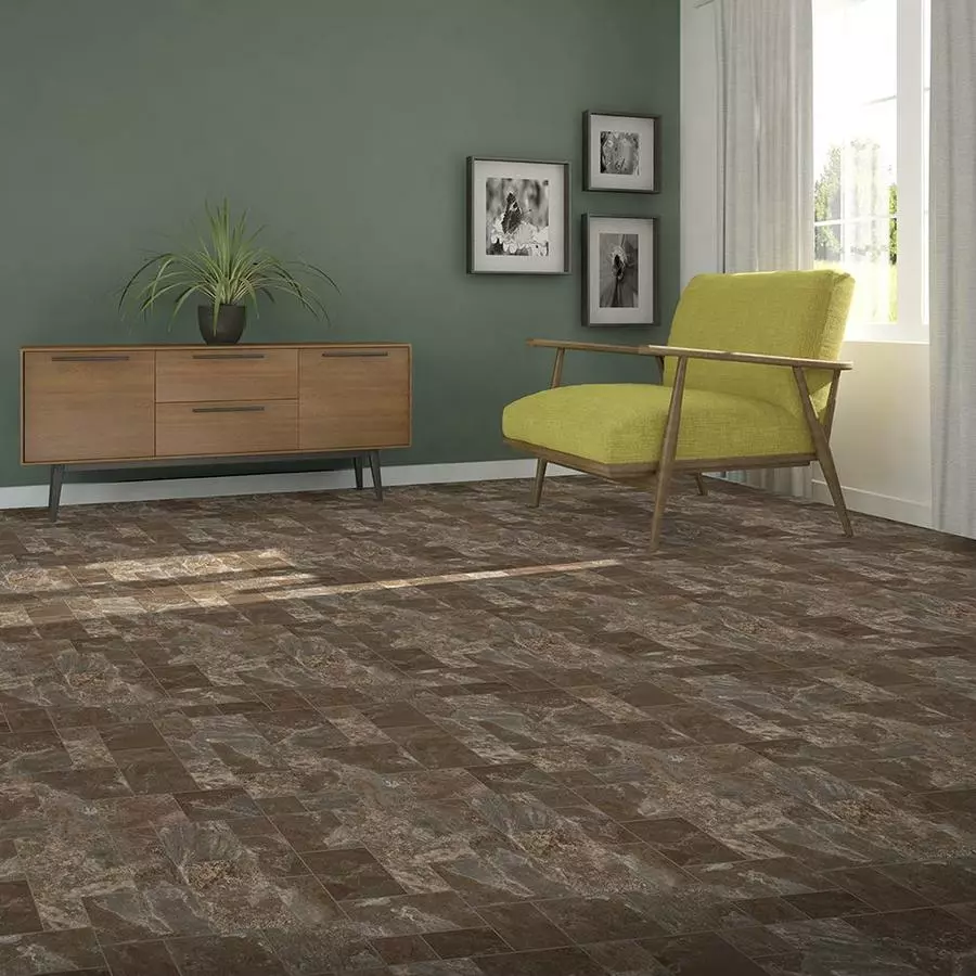 Tough wear layer and dense construction offering protection against rip, tear, gouge and indent