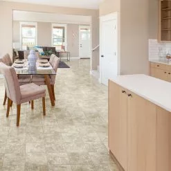 Tough wear layer and dense construction offering protection against rip, tear, gouge and indent
