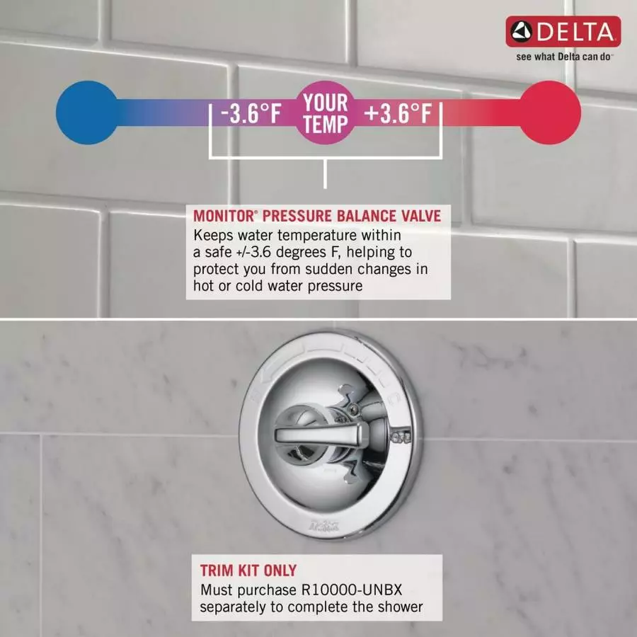 Pressure balance valve keeps water temperature within a safe 3 F (1.6 C), helping to protect you from sudden changes in hot or cold water pressure