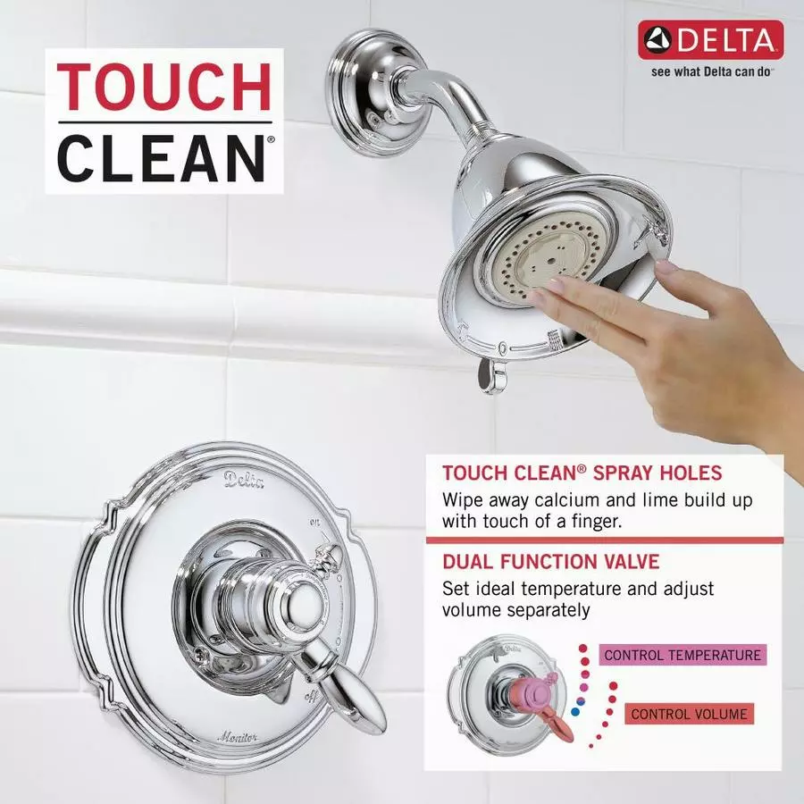 Soft, rubber Touch-Clean® spray holes allow you to easily wipe away calcium and lime build-up from the spray face of your shower head and hand shower with the touch of a finger