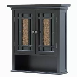 STYLISH WALL CABINET: Features a timeless dark espresso finish with amber glass mosaic doors, beveled trim, and rubbed bronze-finished knobs for a beautiful addition to your space