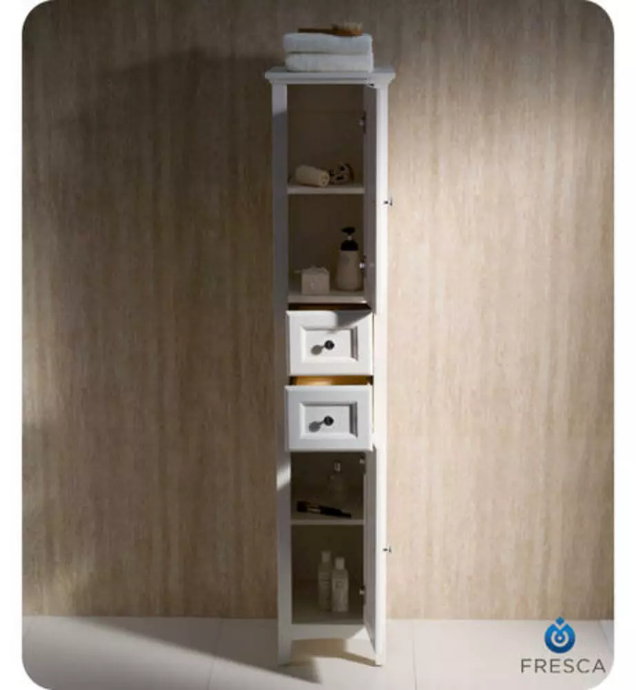 The Fresca Oxford Tall Bathroom Linen Cabinet is not only a perfect addition to any Fresca Oxford vanity ensemble, but it also works very well as a stand alone unit. The cabinet frame is made from solid wood, and is nicely accented with dovetail drawers and plenty of storage space.