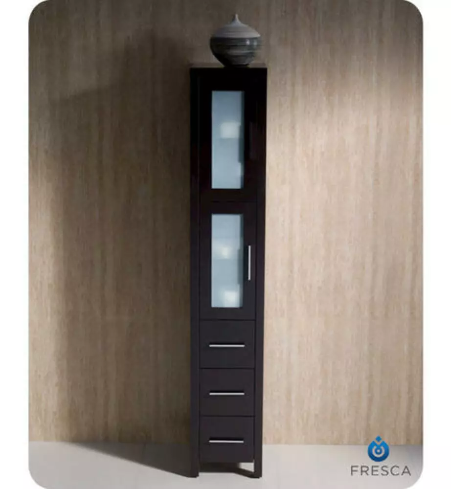 The Fresca Torino Tall Bathroom Linen Cabinet is not only a perfect addition to any Fresca Torino vanity ensemble, but it also works very well as a stand alone unit. The cabinet is made from a high quality veneer with frosted glass on the 2 doors.
