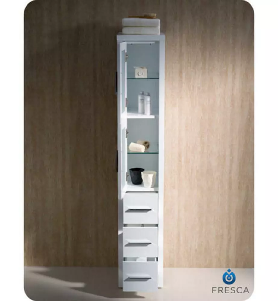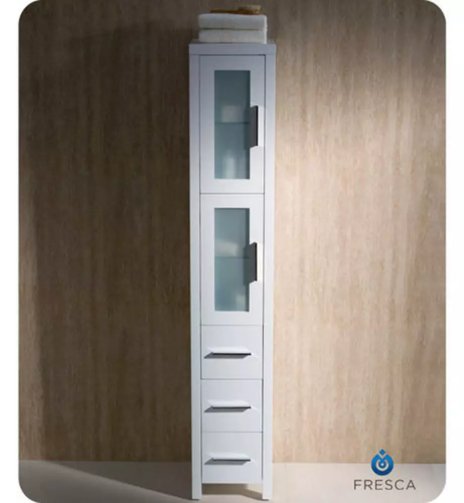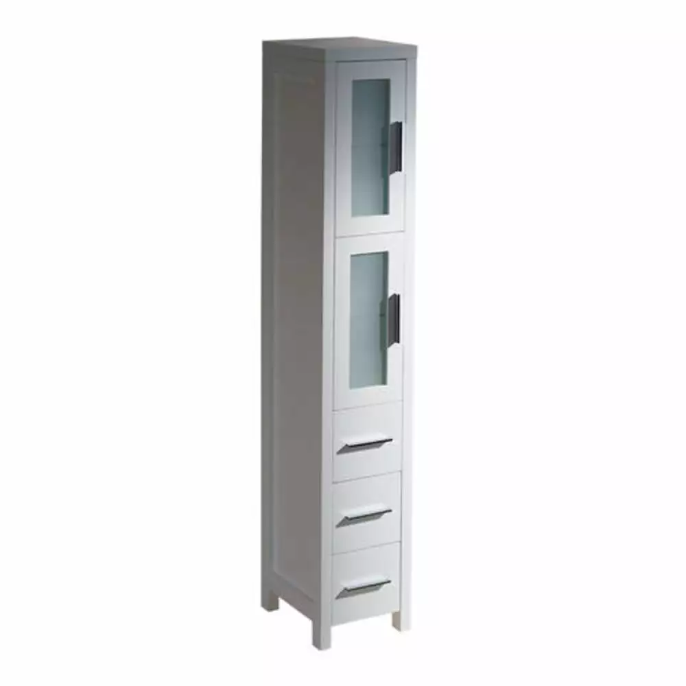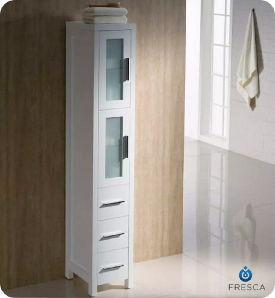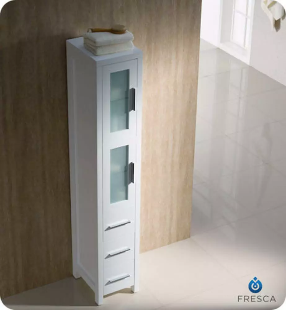 The Fresca Torino Tall Bathroom Linen Cabinet is not only a perfect addition to any Fresca Torino vanity ensemble, but it also works very well as a stand alone unit. The cabinet is made from a high quality veneer with frosted glass on the 2 doors.