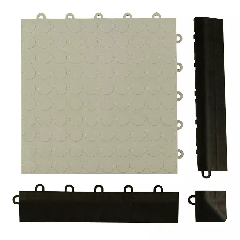 Corner Ramp Piece is designed specifically for the Greatmats Court Floor Flat Top, Garage Coin Top and Garage Diamond Top Floor Tiles. The Click Tile corner ramp easily snap connects onto the edge of the Court Floor Flat Top, Garage Coin Top and Garage Diamond Top Floor Tiles. One corner fits on each corner in your layout. This provides a finished edge to your floor and ramps down for a safe transition. Border ramp pieces also available to complete the edging on your garage floor or multipurpose gym floor installation. Sold in cases of 4, these waterproof indoor corners offer a 5-year limited warranty.