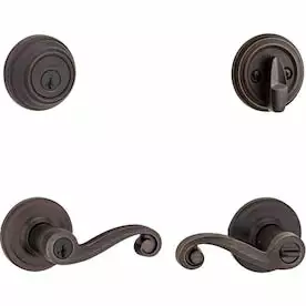 Hardwarestoredelivery Kwikset Lido Venetian Bronze Smartkey Single-Cylinder Deadbolt Universal Keyed Entry Door Handle Combo Pack (1 Handle And 1 Deadbolt)