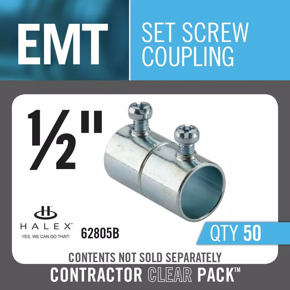 With the 1/2 in. EMT Set-Screw Coupling, you can safely join 2 pieces of EMT conduit together. This steel coupling is concrete-tight when taped. These couplings meet UL and CSA requirements.