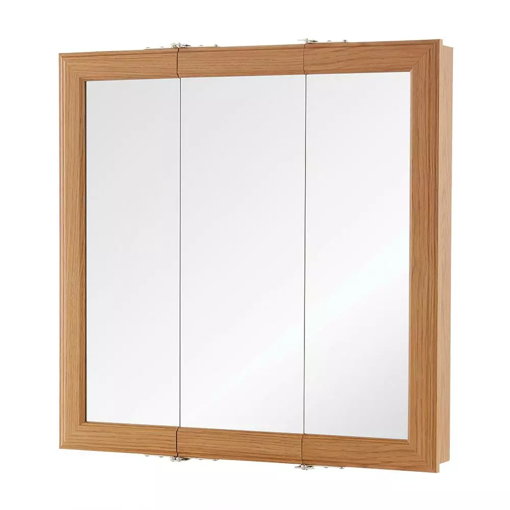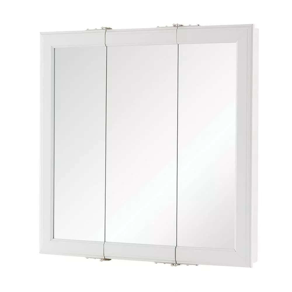 A perfect complement to any bathroom style, the Home Decorators Collections 24-3/16 in. W x 24-3/16 in. H x 4.57 in. D Fog Free Framed Tri-View Surface-Mount Medicine Cabinet features a white framed classic design. Our innovative, fog-free technology is safe, affordable and does not require heating elements. Enjoy a fogless reflection without wiping off your mirror or having to use a hairdryer to remove steam. The tri-view mirror offers multiple viewing angles for added functionality. The 2 adjustable shelves offers ample storage flexibility. Double shelf pegs enable you to customize your space quick and easy. Wood Composite construction provides exceptional durability and strength. Fully assembled for your convenience.