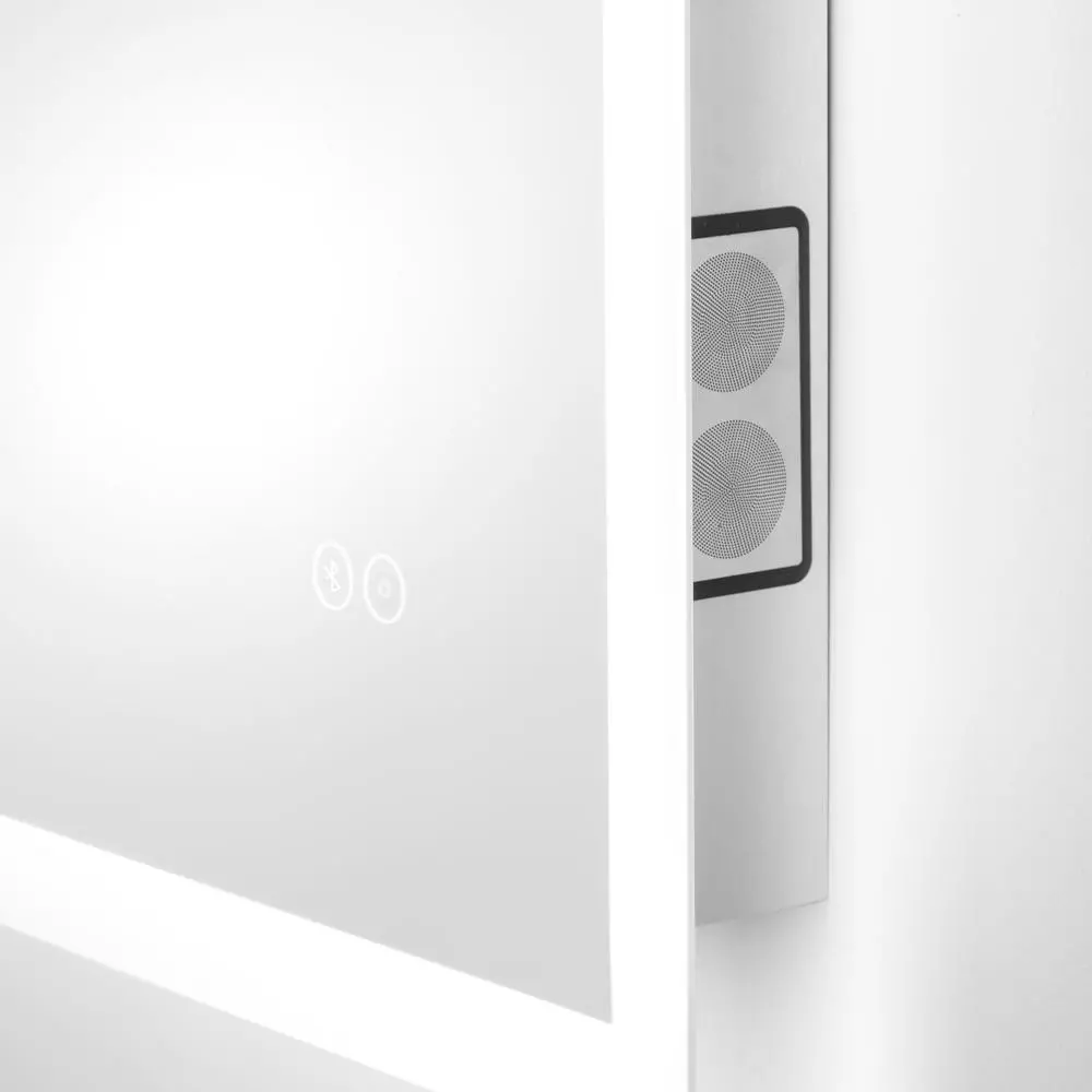 Brighten your space and bring music to your room with the Home Networks LED Dimmable Lighted Mirror with Bluetooth Speakers. The mirror features integrated dimmable LED lighting that borders all 4-sides of the mirror, bringing light to your room and enriching details in the mirrors reflection. This mirror also packs innovative, dual Bluetooth speaker technology that lets you connect, play music and make phone calls seamlessly. Additional features include lighted touch sensor buttons for operation and a built-in anti-fog pad to keep you clear.