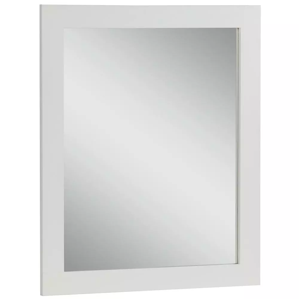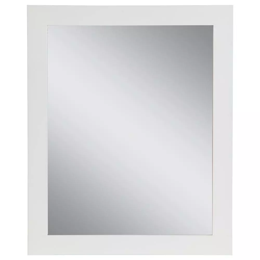 Capture the attention of your guests with the Home Decorators Collection 25.67 in. W Wall Mirror in White. The wall mirror’s clean White finish is an elegant addition to several White finish vanity collections and displays a divine color that is brilliantly painted over a solid wood frame. Designed to be mounted both vertically or horizontally, complete your collection with a mirror that will surely display a stunning look of sophistication.