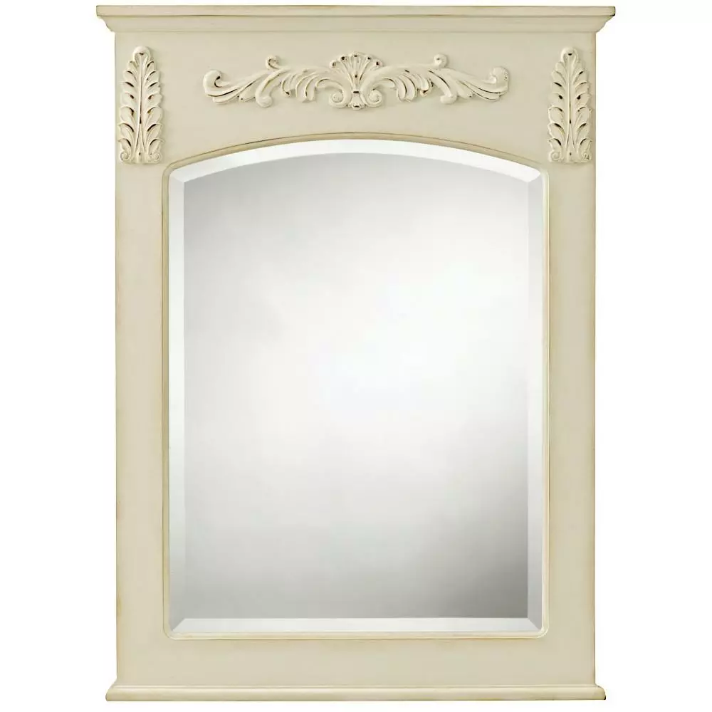 Our Chelsea Mirror features a rectangular frame with intricate, filigreed embellishments and molding on top and bottom. The beveled mirror arches at the top, creating a dramatic sense of space. Add rich texture with this stunning bathroom mirror.