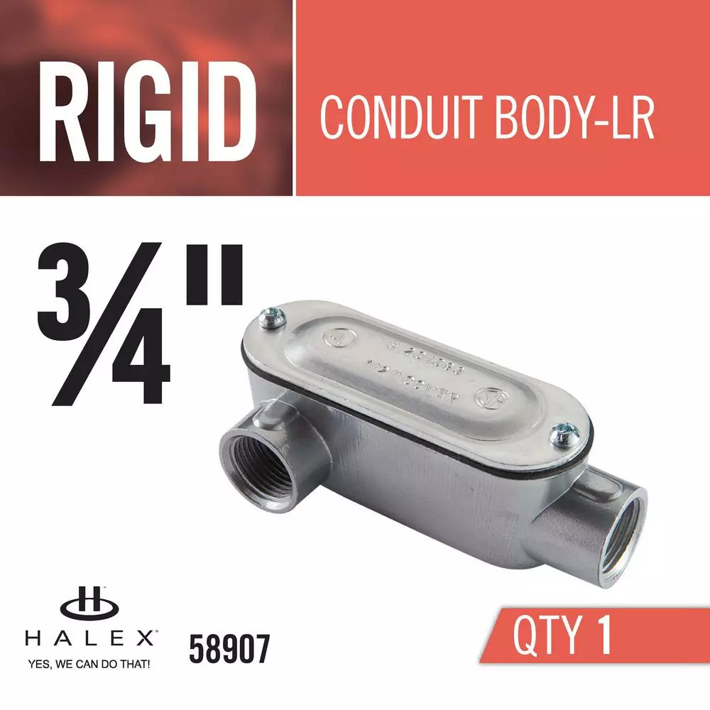 The 3/4 in. Type LR Rigid or IMC Threaded Conduit Body lets you access the inside of rigid or IMC conduit to pull wires, splice or perform maintenance. This aluminum conduit body comes with a cover and gasket. This conduit body meets UL and CSA requirements.