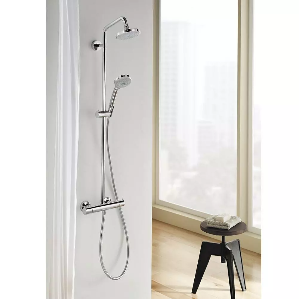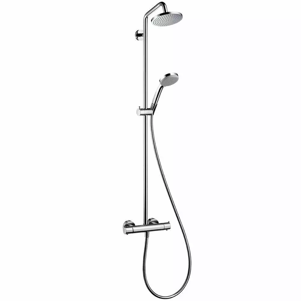 - ALL-IN-ONE SHOWERPIPE: Includes Raindance S 150 AIR Green 1-spray Showerhead, Croma E 100 Green 3-spray Handshower, 63-inch Hose, Croma Showerpipe (required basic rough set 16181181 sold separately)