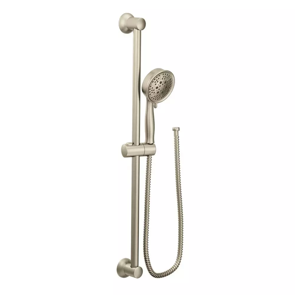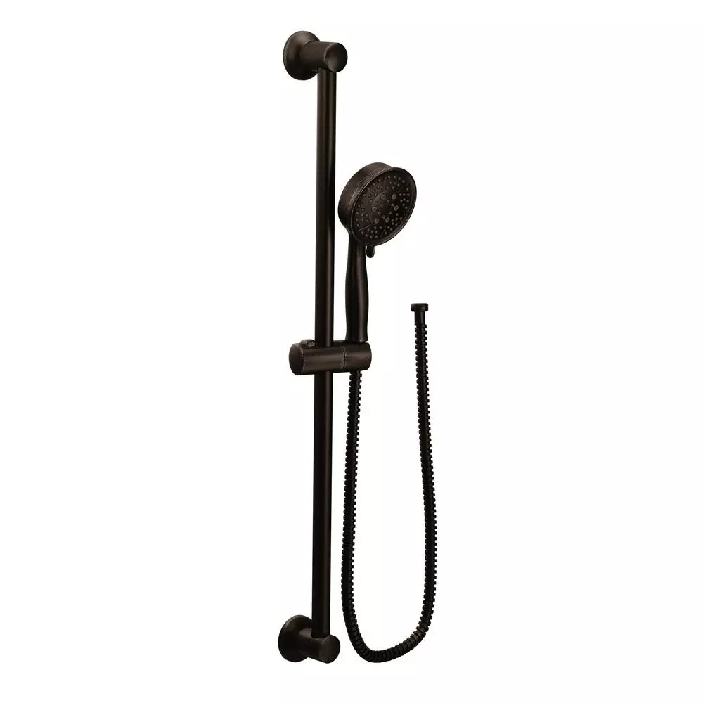 - Included 30 in. slide bar makes it easy to adjust the hand held shower height