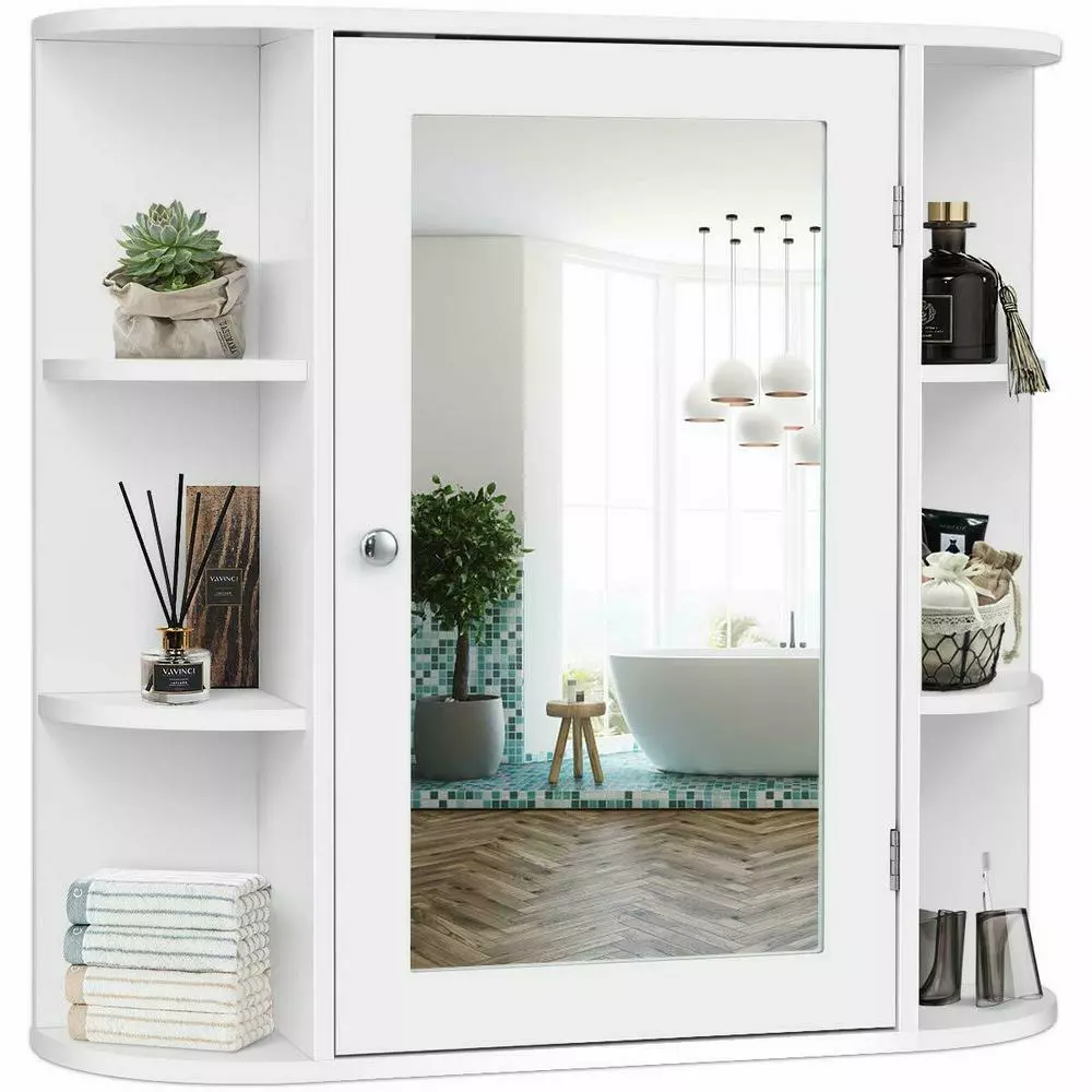 - With door and mirror, comes with pure white finish, this wall cabinet is durable and looks elegant