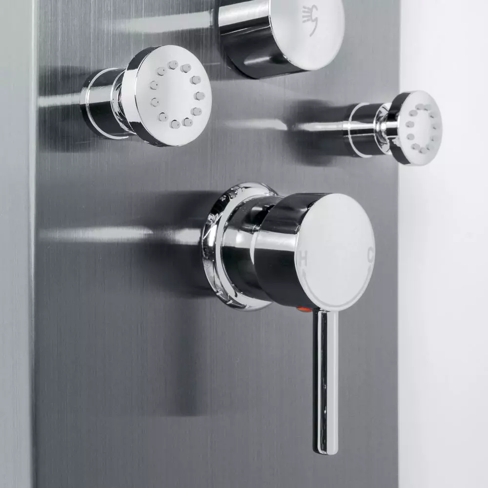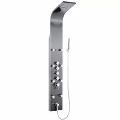 No matter if you are searching for a way of including more relaxation in your everyday life or you just want a top-quality accessory for your bathroom, the AKDY shower panel is the ultimate bathroom system that will provide with hydro massage and a whole lot of other functions. The reason to purchase this shower system is because it’s the shower system you deserve: two shower heads, multiple massage jets, and a waterfall function, all for your comfort during the daily shower. Made from high-end brushed stainless steel with a space gray color and providing 8 different adjustable jet nozzles, as well as 2 shower head functions, this shower is an oasis of relaxation for anyone.