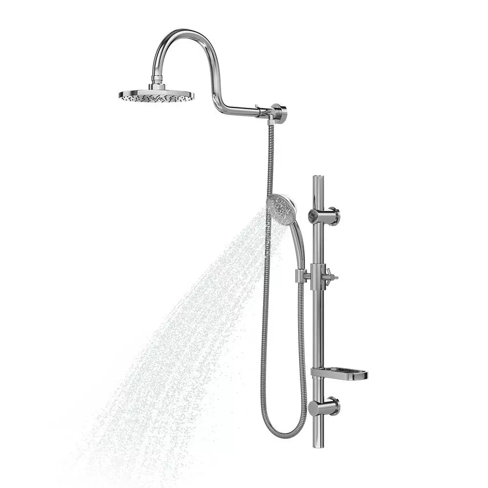 The Aqua Rain Shower System from PULSE ShowerSpas replaces your existing showerhead with an oversized rain showerhead, adjustable slide bar with soap dish and multi-function hand shower. The integrated dual-function diverter allows you to use each function independently or in tandem. The system typically installs in less than an hour, even for the do-it-yourselfer. It simply connects to the water supply at your existing showerhead location and uses your existing hot/cold shower valve, providing a luxurious and customized shower experience for everyone in your home.