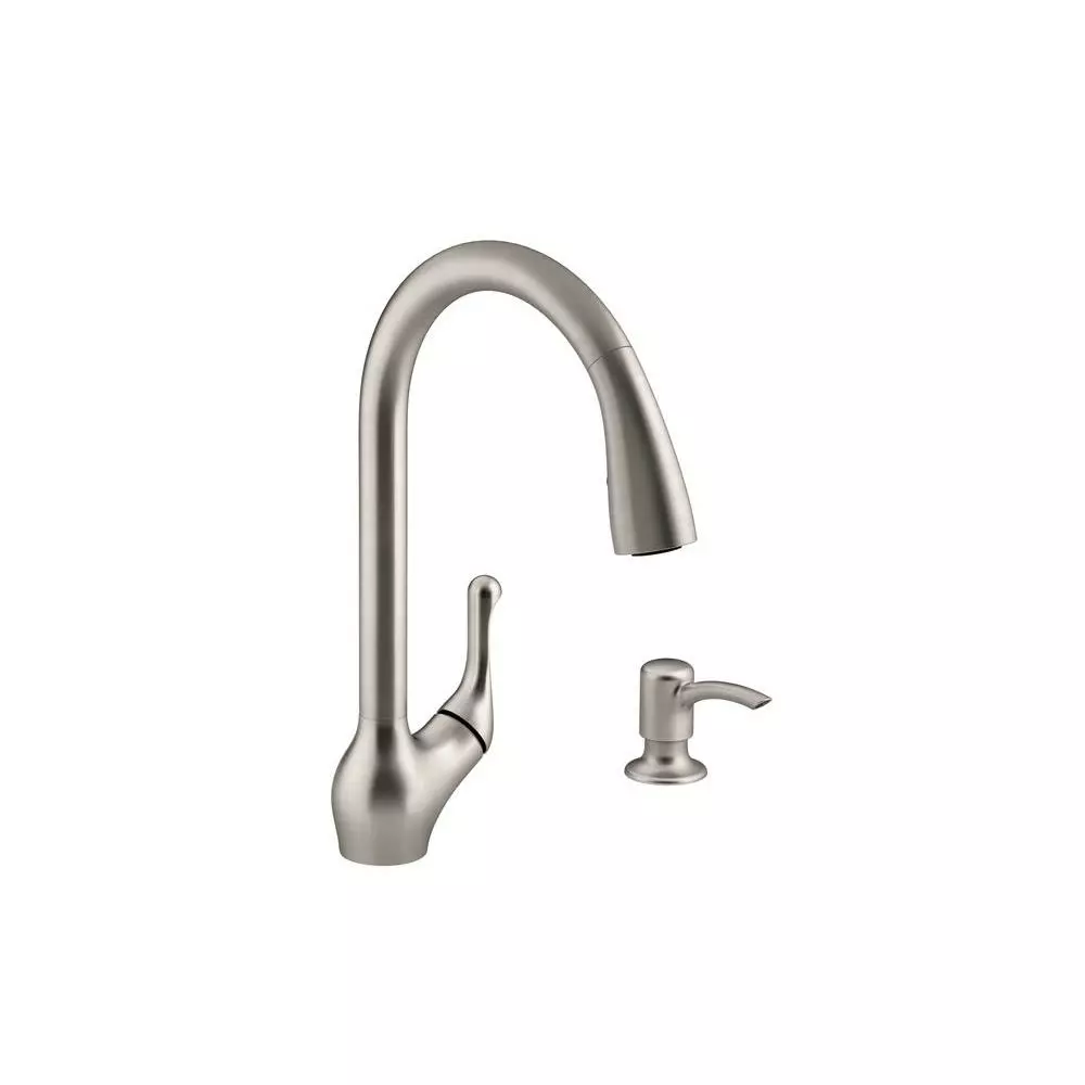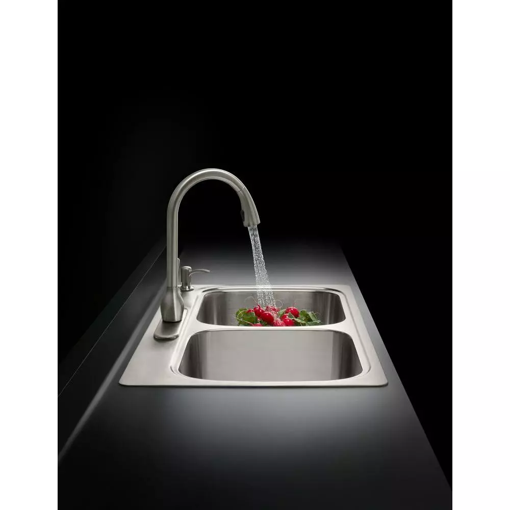 The Barossa pull-down kitchen faucet helps to make life in the kitchen easier. It offers convenient features, such as KOHLER’s new Sweep Spray that forms a blade of water to forcibly wash debris into the drain and a new magnetic docking system, DockNetik, which secures the spray head in place. Barossa also features a 28 in. hose that extends beyond the basin and a matching, top-fill soap dispenser.