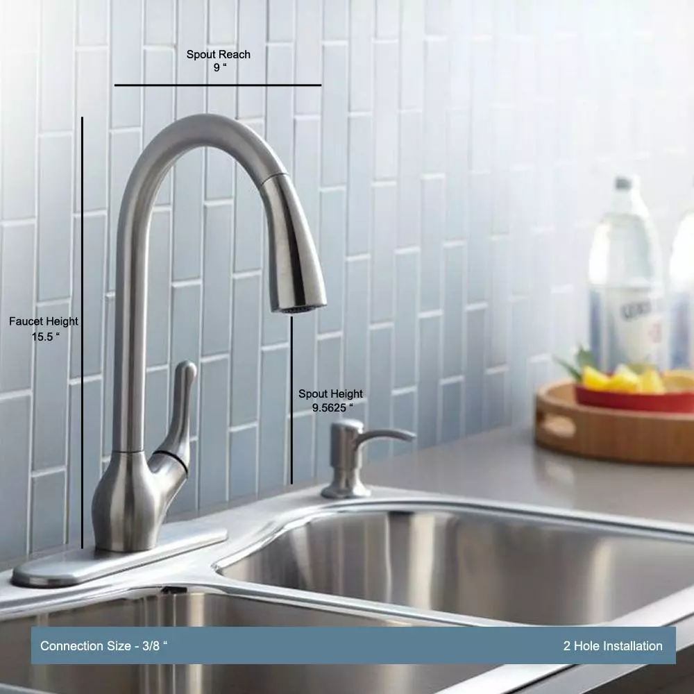 - High-arch gooseneck spout and 360 spout rotation offer superior clearance for filling pots and cleaning