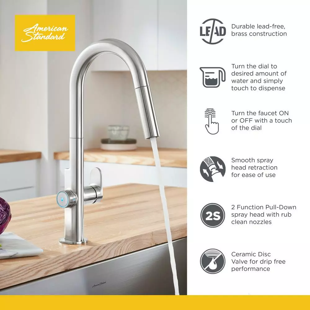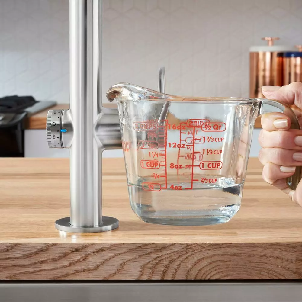 - MeasureFill technology: delivers a precise set volume of water on demand up to 5 cups/40 oz. turn the dial to your desired volume of water, then touch to turn on the water flow