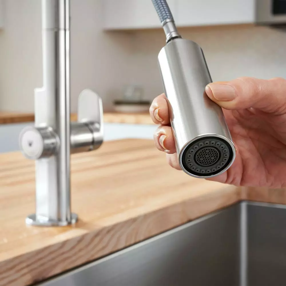- Re-trax spray head retraction system: spray hose technology system to ensure smooth pull-out, operation and retraction of spray head