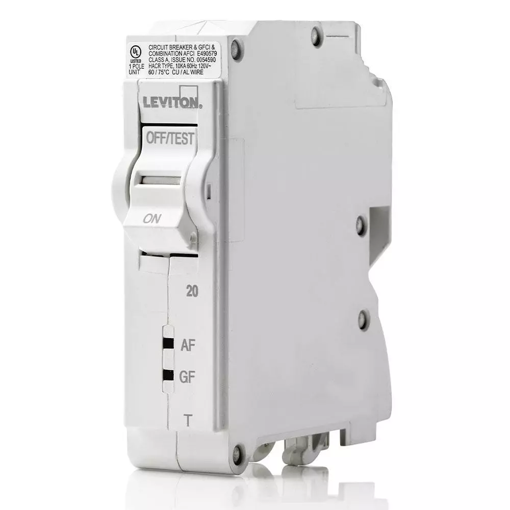 Leviton dual-function AFCI/GFCI Circuit Breakers provide overload, short-circuit, arc-fault, and ground-fault protection and feature an all plug-on design. All hot and neutral wires terminate at custom lugs in the panel, not at the circuit breaker, so the entire panel can be wired without circuit breakers installed. Branch circuit breakers can be easily plugged on at final installation. They also feature color indicators in the handle and intuitive LEDs to easily see operational status at-a-glance. For applications up to 60 Amp when using copper wire or 50 Amp when using aluminum wire.