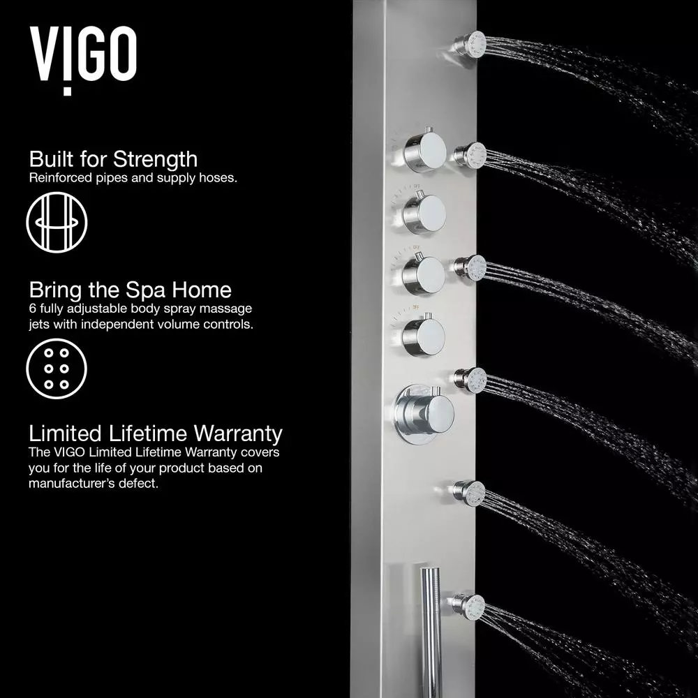 - Quality assured warranty: this shower panel is backed by VIGO’s quality assured limited lifetime warranty