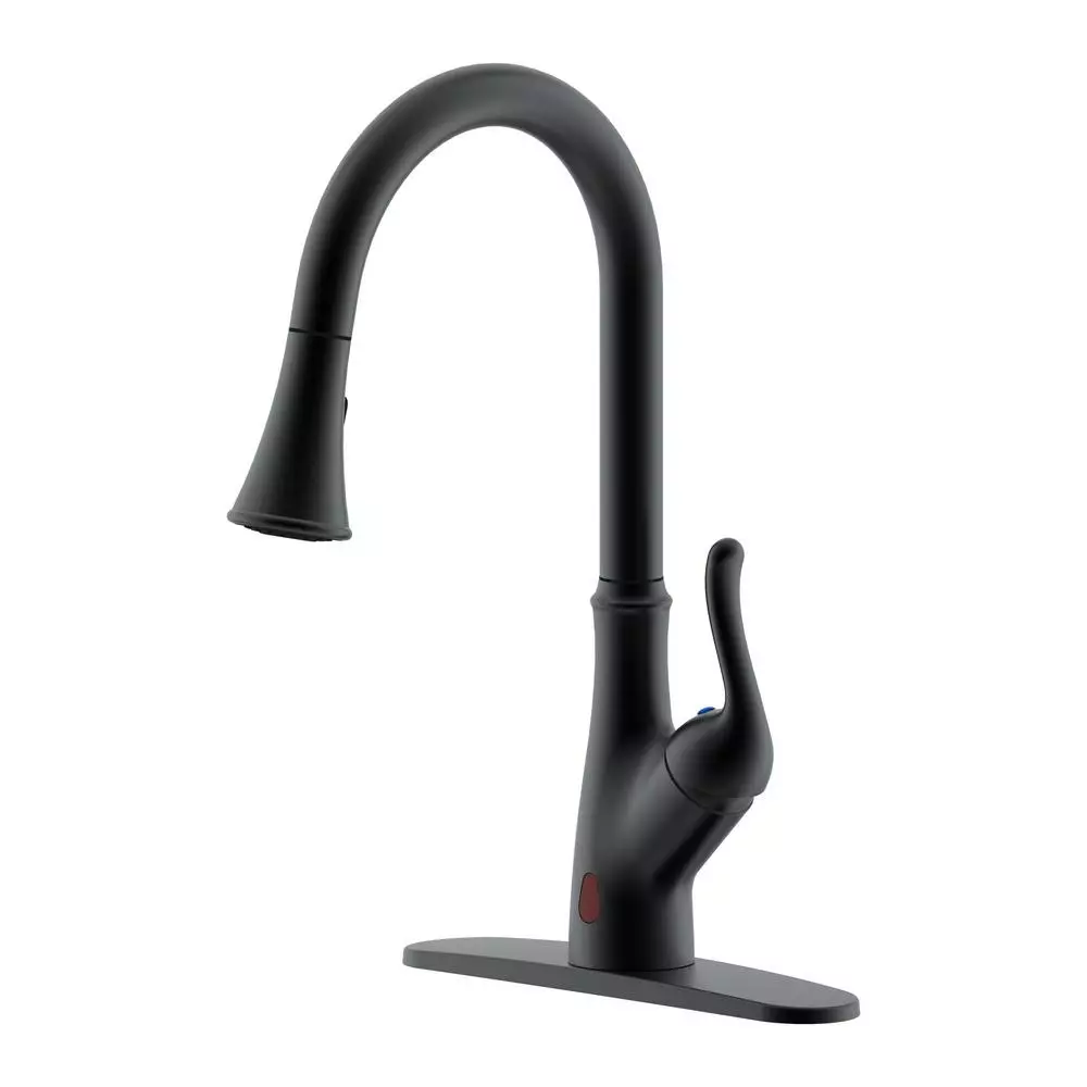 Runfine Group patented design 8 in. deck Brushed Nickel finish kitchen faucet with single handle hot and cold mixer for quick, easy water control. Spout swivels 360° for complete sink access. Includes easy to use pull down handle with sprayer feature. Faucet includes aerator for even flow and ceramic cartridge for consistent on and off control. Touchless design feature lets you turn the water on and off with a wave of your hand.