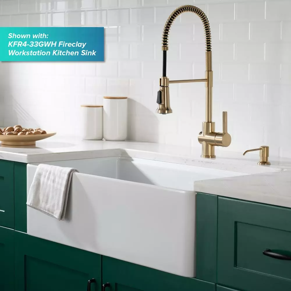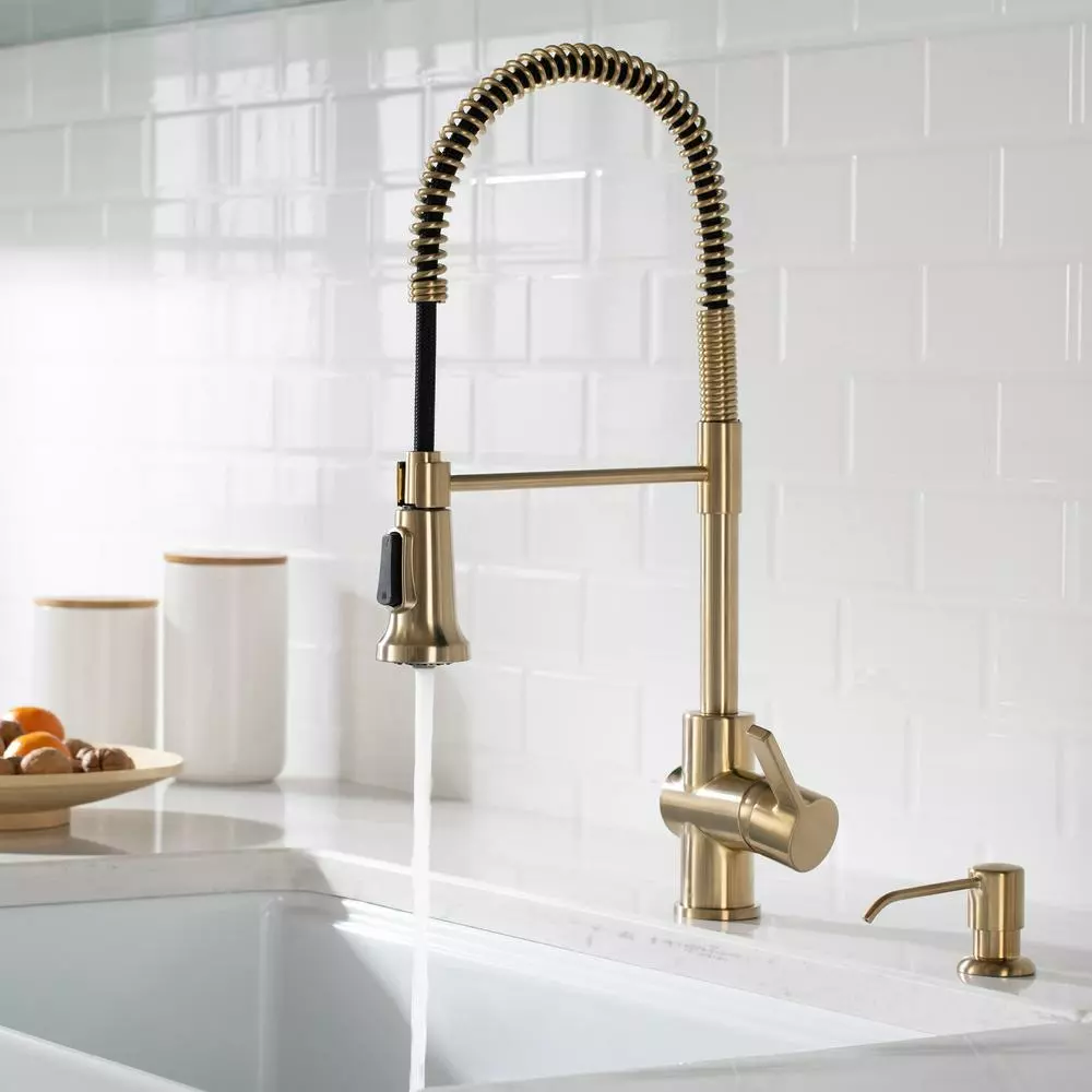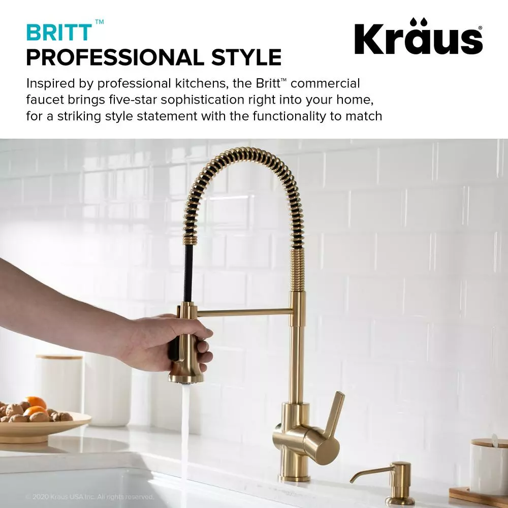 Inspired by professional kitchen design, the Britt commercial faucet blends performance and style to help you build the kitchen of your dreams. Features a commercial-style open coil spout with flexible hose and secure docking arm. All mounting hardware included for easy installation.