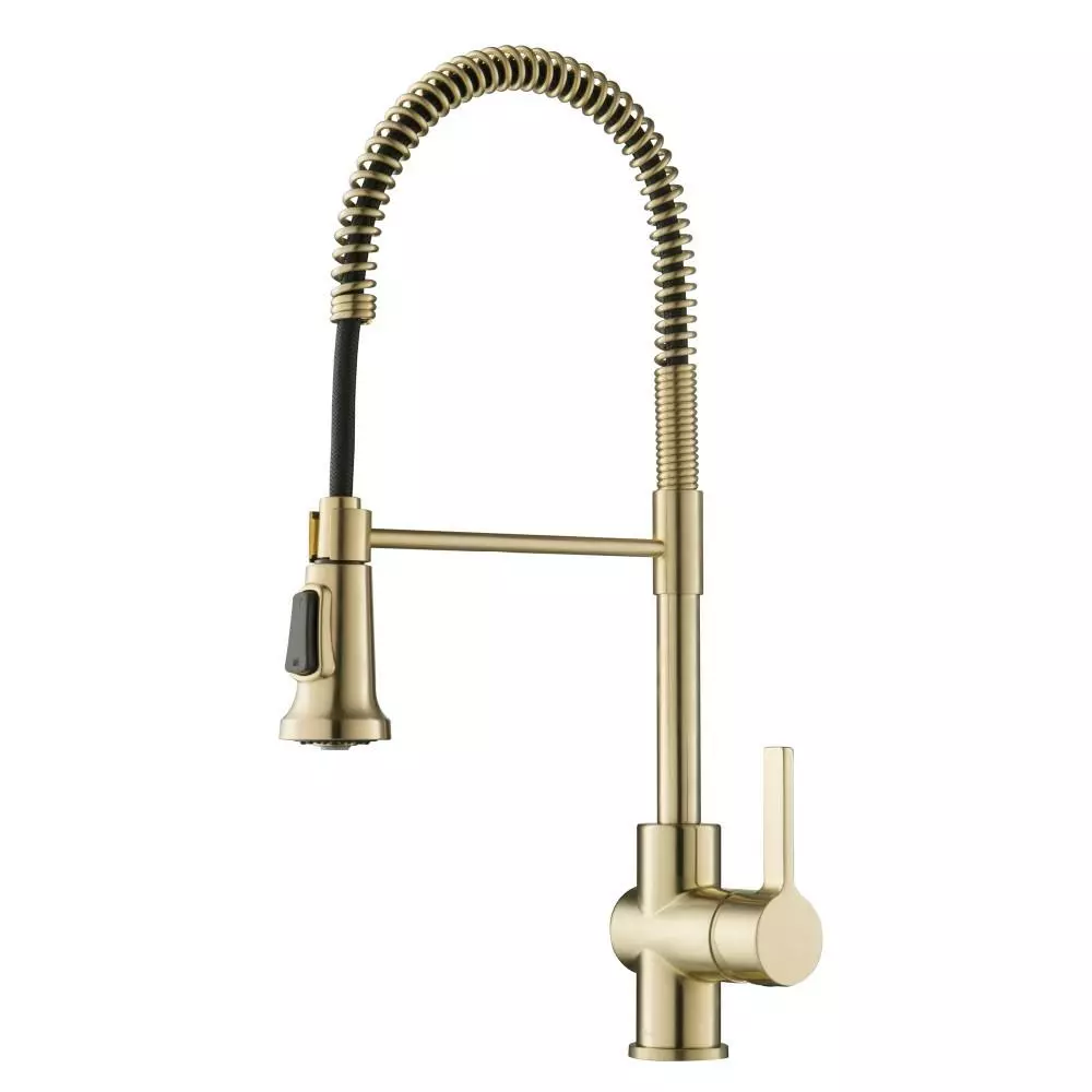 - COMMERCIAL-STYLE DESIGN is both flexible and functional, with a heavy-duty open coil spring spout that creates an industrial look with modern appeal – Optional deckplate included for installation with a 1-3 hole sink