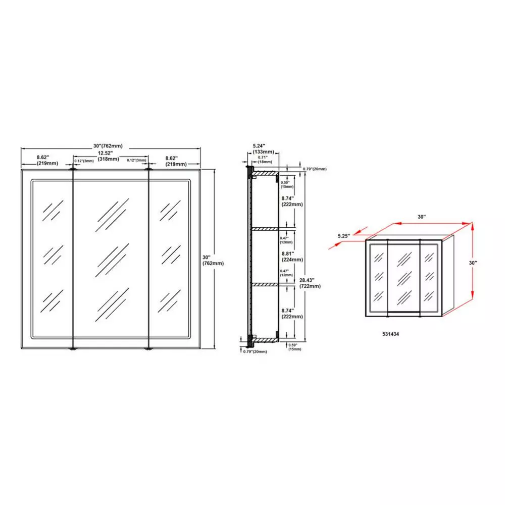- 30 in. W x 30 in. H (to door edge dimensions width and height) tri-view medicine cabinet provides ample storage for rooms with limited space
