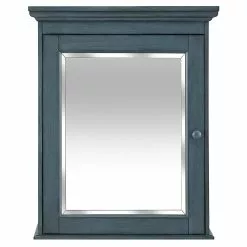 The Foremost Cottage 23-5/8 in. Surface-Mount Medicine Cabinet in Harbor Blue, with its beveled mirror and decorative wood frame, offers a classic look that can add elegance to your bathroom and enhance its overall appeal. Its harbor blue finish can accompany many different decorating schemes. 2-adjustable shelves provide ample space for a variety of container shapes and sizes, giving you versatile storage options. The cabinet can be easily installed with its Secure-Mount system.