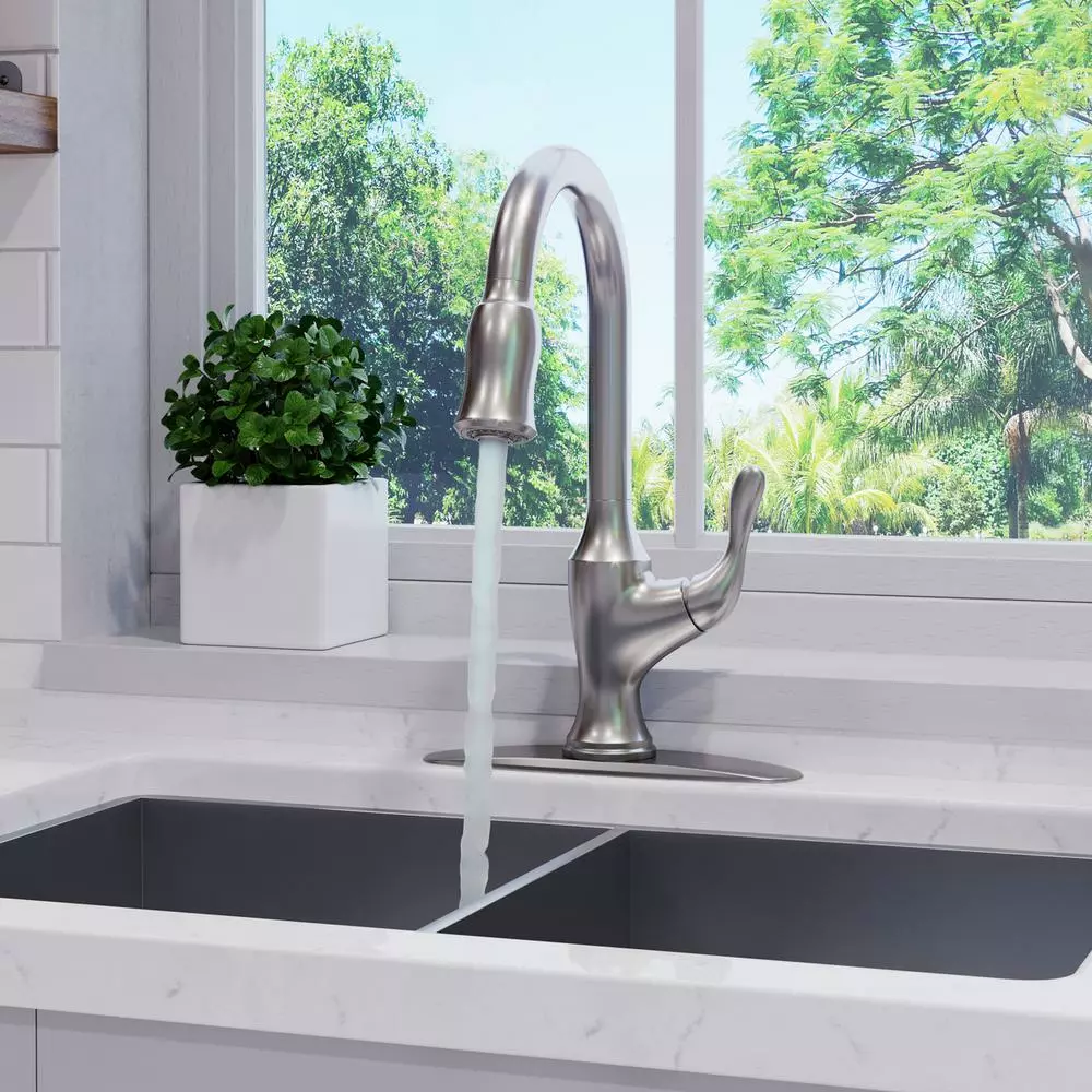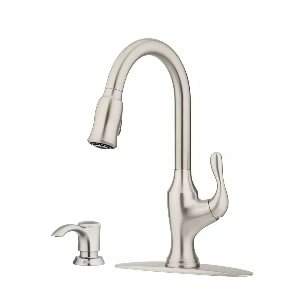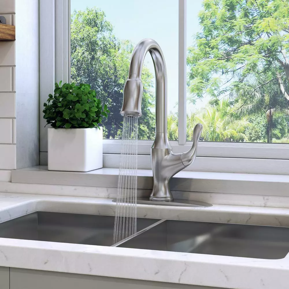 - Pull-Down spray head with toggle button to select spray or stream modes conveniently in the palm of your hand