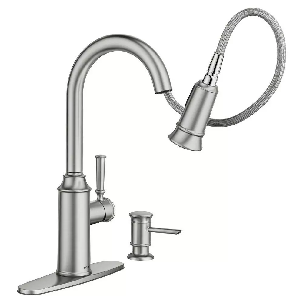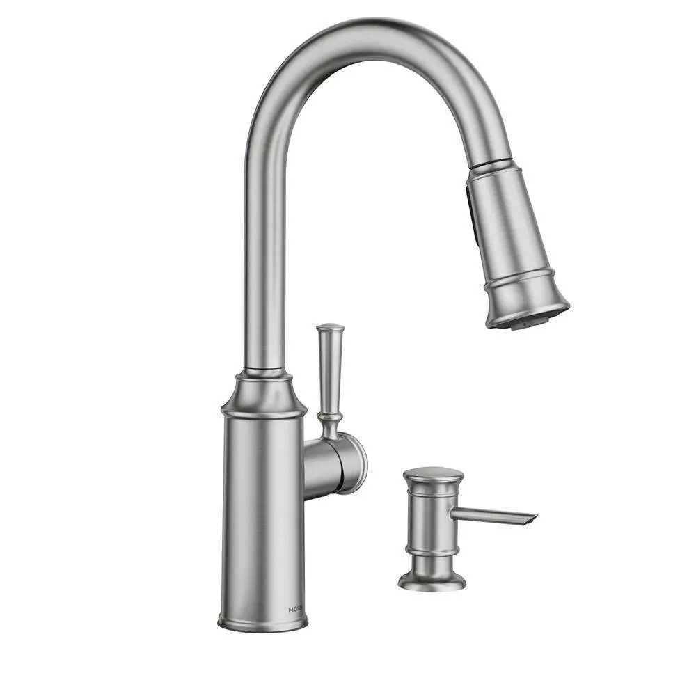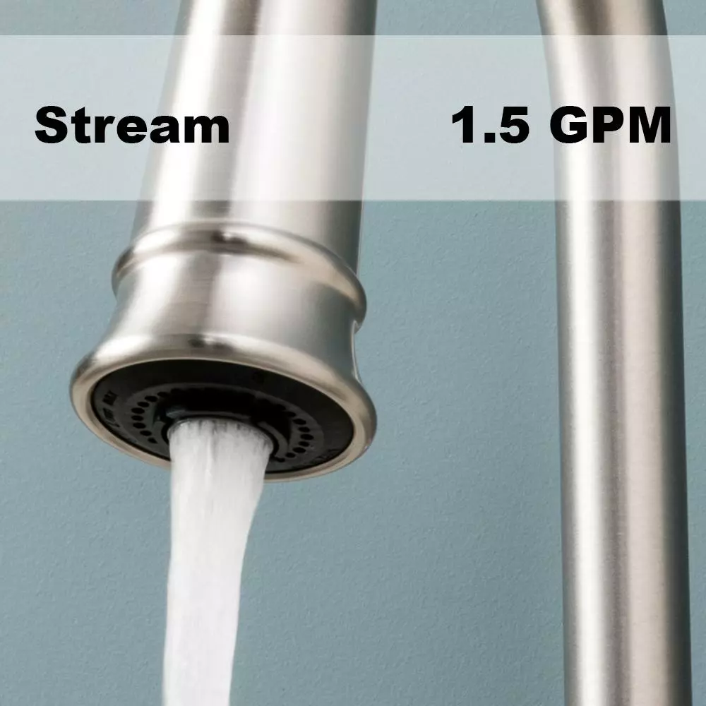 The Glenshire collection’s modern streamlining of classic design trends creates a timeless blend of old and new that’s never out of style. Showcasing MOEN’s top innovative features, the Glenshire Pull-Down Sprayer Kitchen Faucet utilizes Reflex technology, engineered specifically for pull-out and pull-down movement by undocking easily, moving with you and retracting effortlessly when you’re done. The Reflex system was developed in a kitchen just like yours, by observing peoples’ routines to create an effortless experience that simplifies daily tasks. Also designed with Powerclean technology that delivers 50% more spray power, Glenshire ensures efficient washing with less effort. For added convenience, MOEN’s exclusive Spot Resist finish resists fingerprints and water spots to maintain its original brilliance and easily wipes clean, ensuring the beautiful stainless appearance will continue to shine over time.
