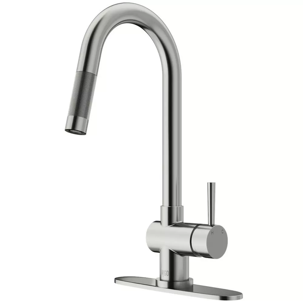 A retractable spout with a 30 in. extendable hose is discretely concealed in the VIGO Gramercy Pull-Down Kitchen Faucet and Deck Plate. Modern and minimalist in design, this faucet features clean lines, a dramatic high arch, and a gooseneck spout. The pull-down sprayer kitchen faucet is made from solid brass construction and features a 7-layer plated finish that expertly repels rust, corrosion and tarnish. A matching finish deck plate comes with this model, allowing for easy transformations from any 1, 2, 3, or 4-hole installs.