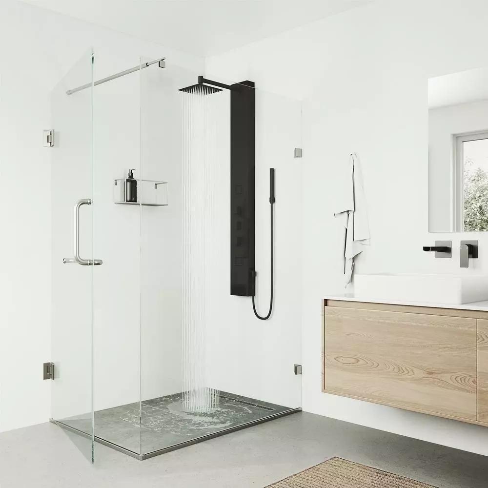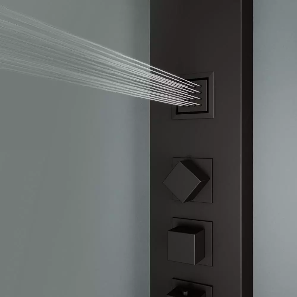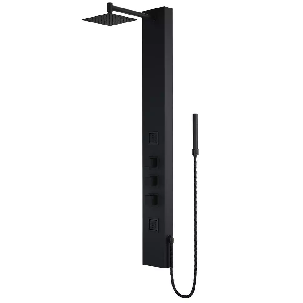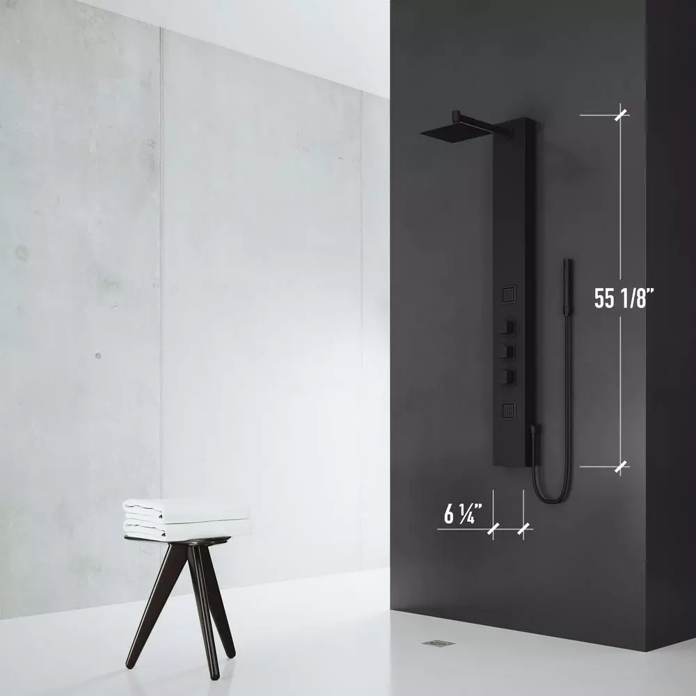 If health is the epitome of wealth, then the VIGO Kingsley Shower Panel is the smartest decision you can make for the well-being of your mind, body and soul. Rethinking design from the outside in, this massage-jet shower system integrates intelligent hydrotherapy through pressure-targeted body sprayers to address specific pain points. The shower panel includes a stainless steel-constructed, square rain showerhead that emits an all-encompassing stream of water from the top down. There is an extended-reach hand shower of up to 58 in. to let users direct the waters flow to their preference. The panel is outfitted in a 7-layer coated matte black finish, the body of the shower panel is made from the same lightweight yet durable stainless steel makeup to prevent rust, corrosion and tarnish. The hardware on this model is made from so lid brass and also outfitted in the same matte black finish. Beautifully built and easy to love, the VIGO Kingsley lets users enjoy healthy living.
