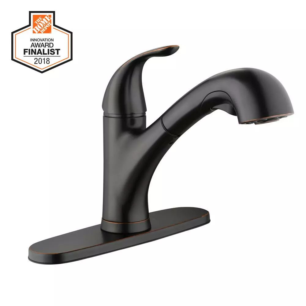 The Glacier Bay Market Single-Handle Pull-Out Sprayer Kitchen Faucet in Bronze is constructed of solid metal to ensure long-lasting performance and enjoyment. Its single lever handle meets ADA standards for ease of use in adjusting water temperature and volume. The pull-out sprayer features an aerated spray and a new TurboSpray that is exclusive to Glacier Bay. The TurboSpray provides a stronger spray pattern than your standard pullout faucet. The sprayer also includes a 29.5 in. braided supply hose with 25.2 workable length for an extended reach, making it ideal for filling large pots and pans or washing down the sink. This kitchen faucet also includes the exclusive FastMount mounting system to make installation quicker and easier.
