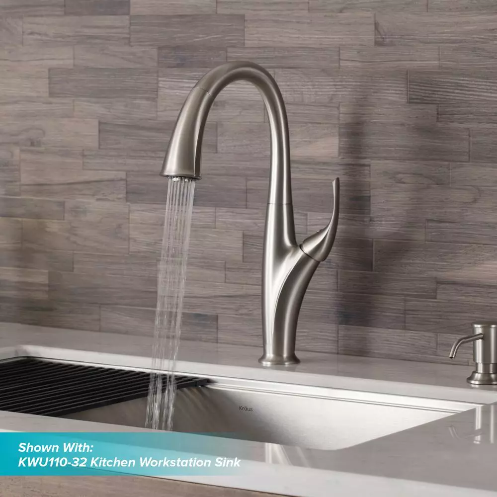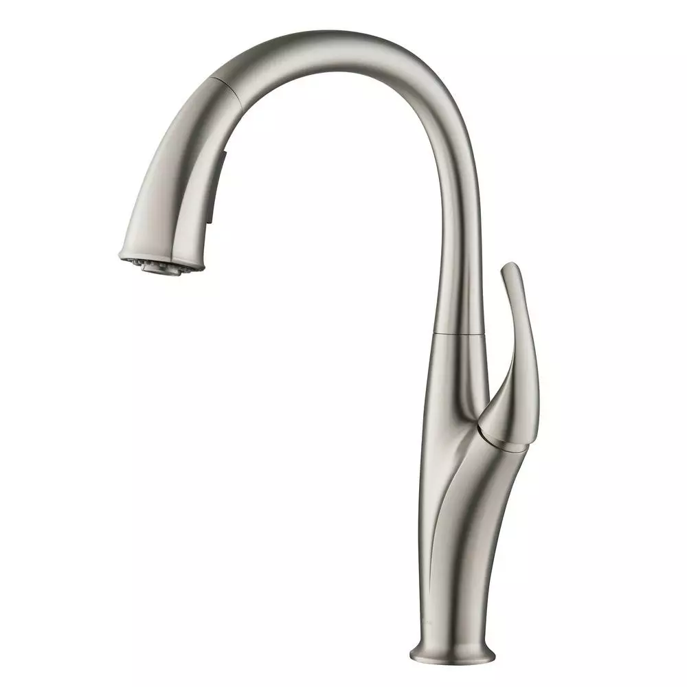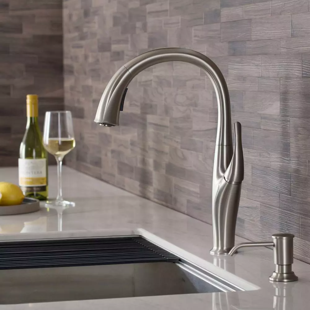 Sweeping curves and a swan-like high-arc spout make the Odell faucet a striking addition to any kitchen. The highly functional pull-down design features a dual-function sprayhead. The faucet comes with Reach technology for an extended range of motion.
