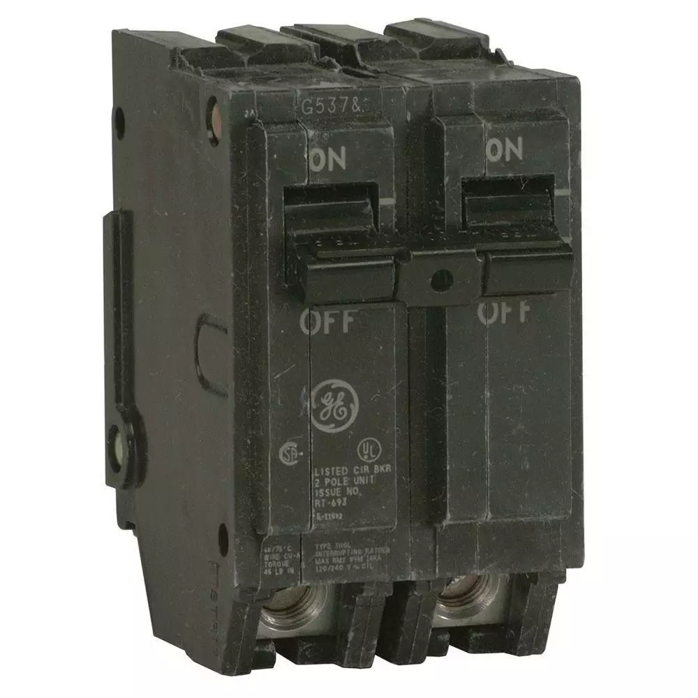 The GE Q-Line 100 Amp 2 in. Double-Pole Circuit Breaker is a box-type terminal that is compatible with PowerMark Gold load centers. This breaker meets NEMA standards and is ANSI certified and CSA and UL listed. The unit features tin-plated copper stabs to create reliable, permanent and corrosion-resistant connections with a calibration screw that is cemented to prevent shifting.
